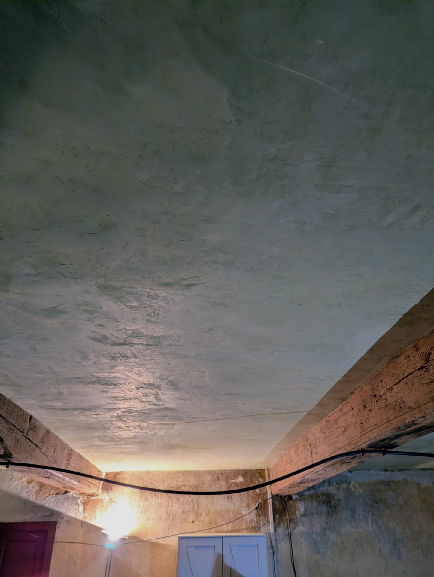Plâtre stuqué teinté masse, sur plafond lattis