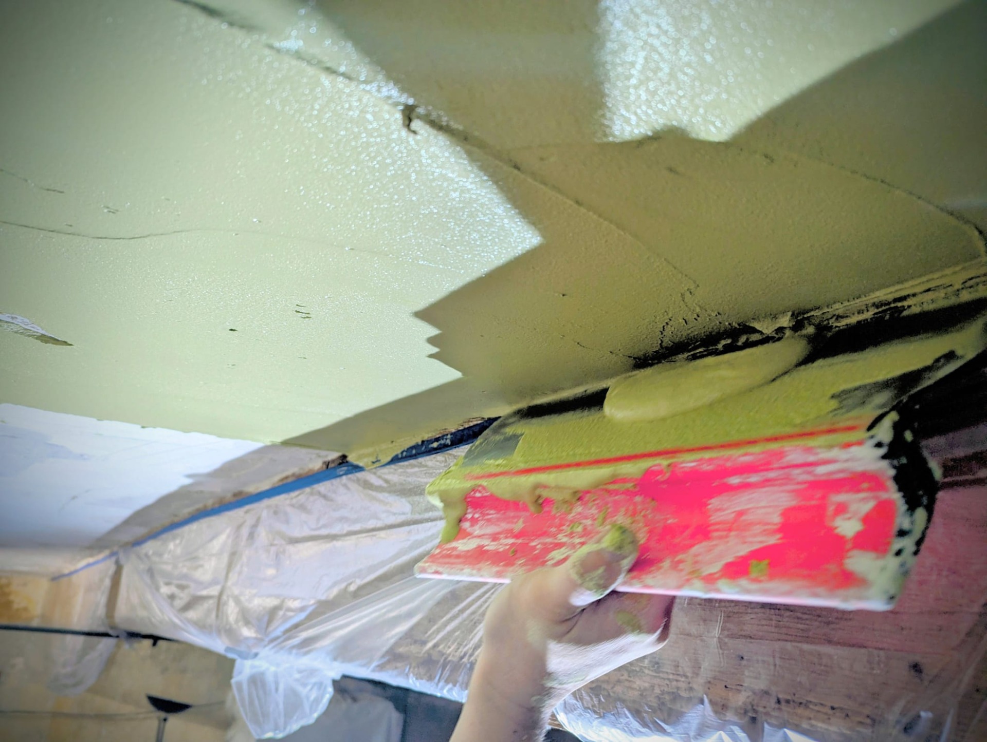 Reprise du plâtrage de la voûte - colature et badigeon teinté ocre