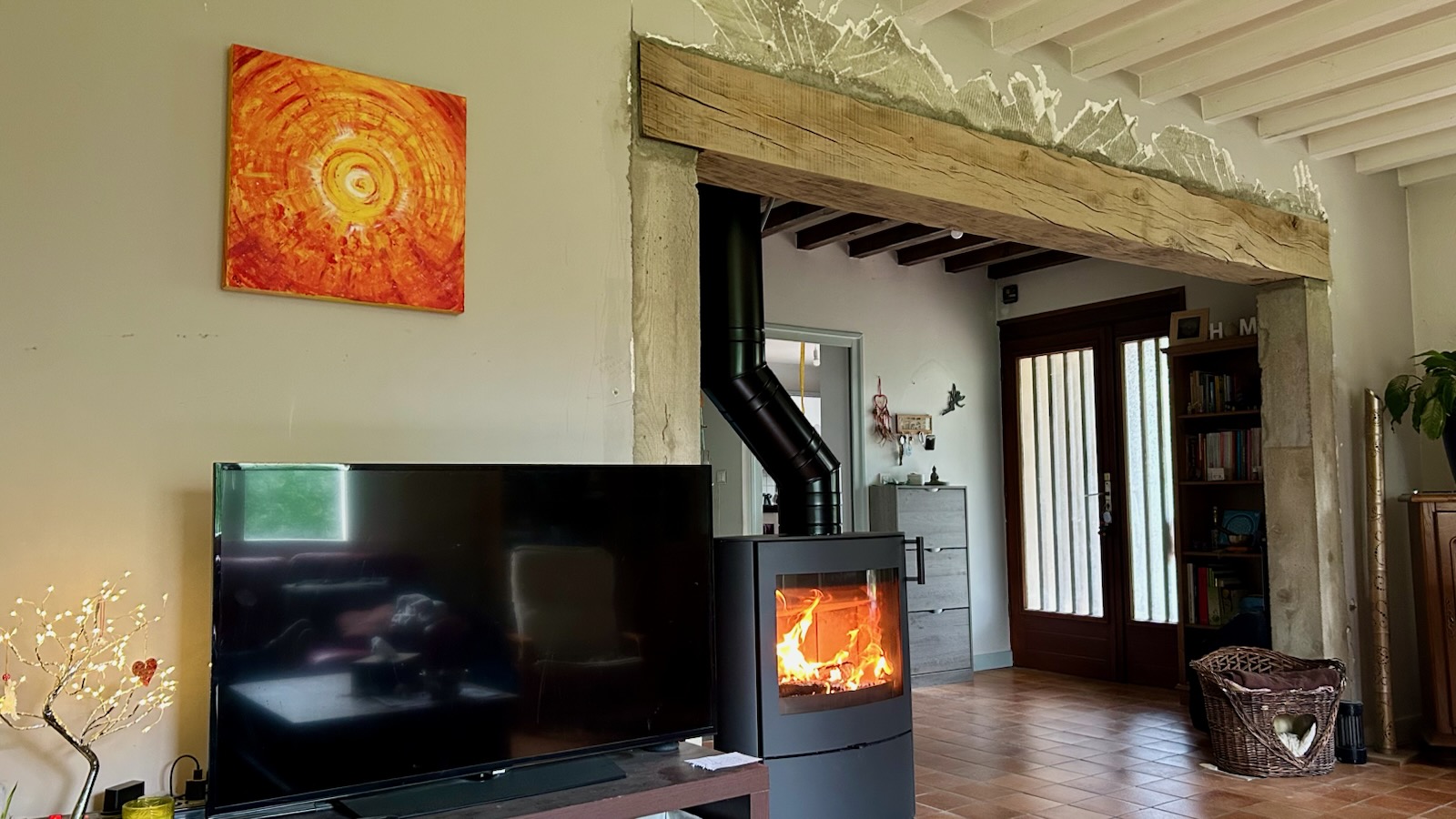 Ouverture 4m, linteau chêne local (bâti année 70)